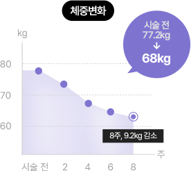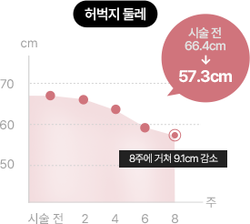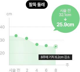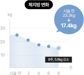 [ 8주간 진행 / 측정항목: 시술 전, 후 인체측정 (체중, 체지방, 허리둘레, 팔뚝둘레, 허벅지 둘레 ) ]